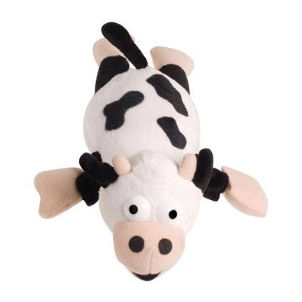 You'll laugh 'til your sides hurt! Flying cow works like a slingshot and makes a mooing sound while flying.Just insert your fingers into the hand pockets, pull back and let it fly!